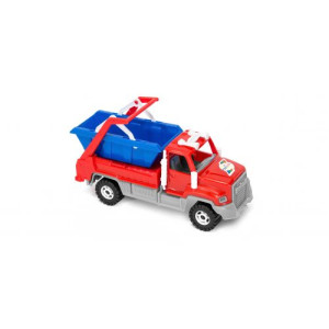 Яркая пластиковая машинка-грузовик 'Камакс-н комунальная'. Оснащена большими колёсами и подвижным кузовом-платформой. Изготовлена из качественного прочного пластика.