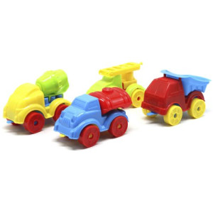 Набор пластиковых машинок-конструкторов. В комплекте есть 4 машинки - разные представители спецтехники. Размер 1 машинки - 11х7х6 см., диаметр колес - 3 см. Выполнены из качественного и прочного пластика. Для детей от 3-х лет.