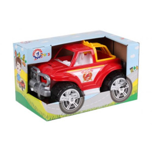 Яркая пластиковый пожарный джип с большими колёсами. Внутри машинки есть место водителя и пассажира. Внедорожник очень яркий, изготовлен из качественного пластика.