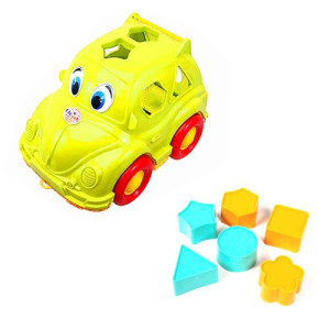 Авто-сортер жук. Есть 6 геометрических фигурок, которые нужно правильно продеть через отверстия на машинке. Открывается задняя дверца.