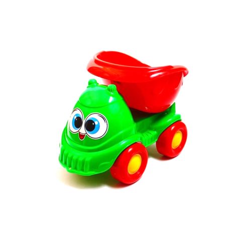 Пластиковая яркая машинка с маленьким откидным кузовом. С глазками.