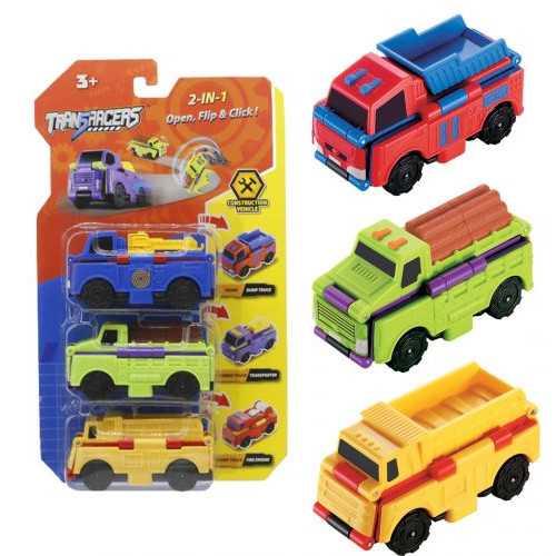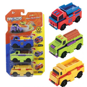 Машинки трансформеры 'TransRacers'. Особенность данного вида машинок заключается в том, что одну машинку можно трансформировать в совершенно другую. 3 машинки в наборе. Длинна 1 машинки 8 см. Выполнены из качественного пластика. Для детей от 3-х лет.