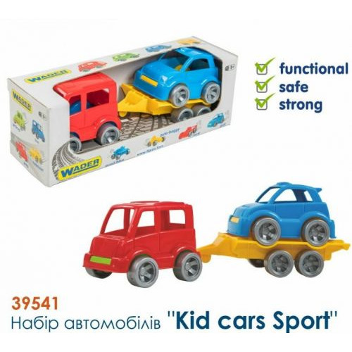 Набор состоит из машинки автобуса, к которому крепится прицеп на колёсах, при помощи которого автобус может перевозить гольф кар. Размер одной машинки: 9 см. Машинки очень яркие, изготовлены из качественного пластика.