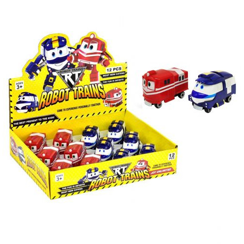 Набор паровозиков 'Робокар Поли'. 12 поездов (6 красных и 6 синих). Размер одной машинки - 8 х 4 х 5 см.