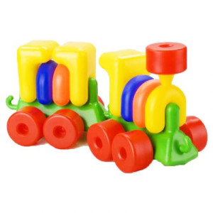 Паровоз с прицепом: 2 корпуса с отверстием для осей (25 х 11,2 х 8,4), 9 колес (7,7), 3 кабины Г-образной формы (12,7 х 9,3), 4 скобы (9,2 х 9,2). Изготовлен набор из качественного пластика.