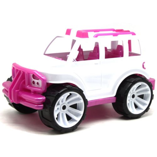 Пластиковая машинка-внедорожник. Довольно большого размера: 30х18х18 см., диаметр колес - 8 см. Выполнено из качественного и прочного пластика. Для детей от 3-х лет.