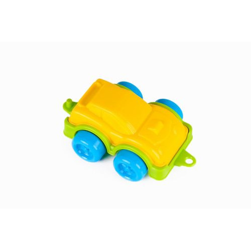 Яркая пластиковая машинка 'Мини'. Имеет петельку спереди и крючок сзади, с помощью которых машинку можно цеплять к другим автомобилям.