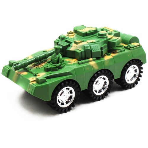 Танк пластиковый. Башня поворачивает на 360 градусов. Открывается люк. Дуло поднимается и опускается. В наборе есть фигурка солдата с автоматом, которую можно установить на танк.