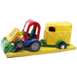 Яркий, пластиковый трактор с ковшом будет хорошим подарком ребенку. Игрушка проста в управлении. Прицеп открывается/закрывается, также его можно отсоединить от трактора, в комплекте есть пластиковая фигурка лошади. Выполнена из качественного пластика. Для детей от 3-х лет.
