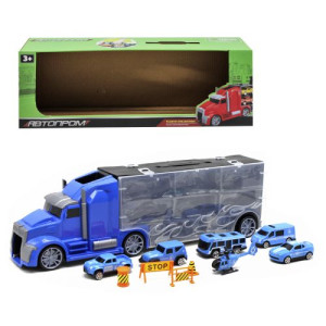 Трейлер с машинками синий