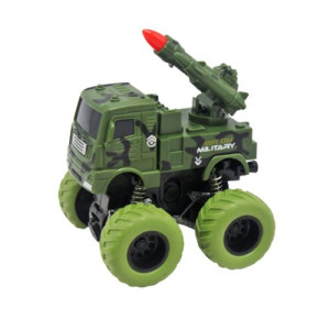 Инерционная машинка выполнена в стиле военной техники. Игрушка имеет подвижные элементы. Размер игрушки 10,5х9х9 см. Выполнена из прочного пластика. Прорезиненные колеса диаметром 4 см.