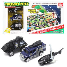 Игровой набор включает в себя полицейский транспорт: 2 машинки и вертолет, а также игровой коврик. К..