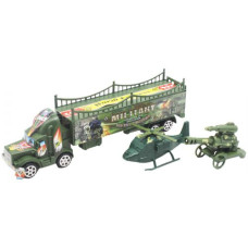 Игровой набор включает в себя трейлер, вертолет и гаубица. Игрушки выполнены из пластика. Машинка ин..
