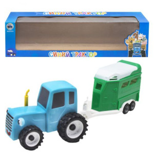 Игрушечный трактор с прицепом. Трактор инерционный. Выполнен из качественного пластика. Ребенок сможет разыгрывать вместе с игрушечным героем мультфильмов сюжетные истории из мультсериала или придумывать свои. Для детей от трех лет.