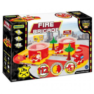 Пластиковый трек 'Play Tracks City: Пожарная станция'. Игровой набор содержит 2 гаража для размещения пожарной техники и 3 автомобиля Kid Cars.