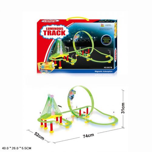 Трек 'Паравозик' будет интересным подарком ребёнку. В наборе есть элементы трека и 1 паравозик. Размер трека 76х52х31 - см., паравозика - 8х6 см. Паравозик светится, есть звуковые эффекты (звук поезда, который едет). Выполнен из качественного пластика. Для детей от 3-х лет.