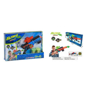 Набор с автоматом 'Slime Rifle'. Необычный автомат, особенностью которого есть то, что он стреляет не пульками или водой, а слаймами. 'Сопли' заливаются в специальный резервуар, который крепится к автомату. Дальность высрела - до 5 метров. Слаймов в наборе хватит примерно на 500 выстрелов. Маска в комплекте.