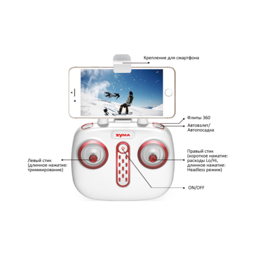 Квадрокоптер Syma X8SW имеет широкую область применения, благодаря чему позволит сделать четкие и яркие фото и видео местности, животных, морей и прочего. С помощью прикрепленного к пульту смартфона, можно наблюдать за съемкой в режиме реального времени. Все видео и фотоматериалы записываются на карту памяти MicroSD, с которой в дальнейшем можно перенести на компьютер или планшет. Дрон оснащен барометром и поэтому превосходно справляется с удержанием высоты, а 6-и осевой гироскоп обеспечит стабильность во время полетов. Аккумуляторная батарея повышенной емкости 7.4В 2000 мА/ч позволяет гаджету находиться в воздухе до 9 минут. Яркие диоды, расположенные на корпусе Syma X8SW, обеспечат безопасность полёта даже в темное время суток и не позволят его потерять. Широкий угол обзора камеры на 2 МП позволяет получить реалистичные восхитительные фото- и видеоматериалы каждого своего приключения. Квадрокоптер имеет еще один полезный режим - Headless, который поможет начинающему пилоту быстрее освоиться и понять, как управлять устройством.