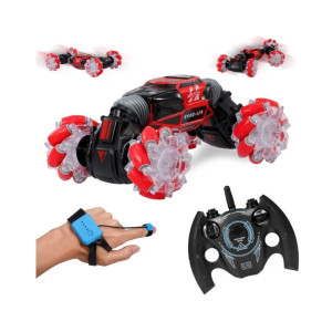 Данной машинкой можно управлять жестами при помощи специального браслета, который входит в комплект с машинкой Hyper Skidding. Увлекательный процесс управления понравится не только детям, но и взрослым. И все это будет сопровождаться звуками работающего мотора, яркой подсветкой колес и песнями. Особенно эффектно машинка смотрится в темноте. В комплект поставки входят два пульта управления, один стандартный, второй браслет, аккумулятор и два зарядных устройства.
