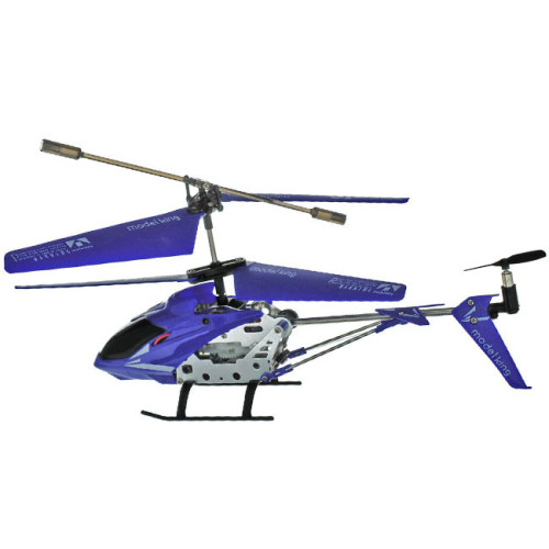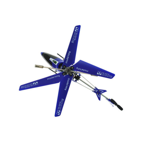 Данная модель имеет 3.5 канальный инфракрасный пульт управление, который работает от 6 батареек типа АА (в комплект не входят). Зарядка вертолета возможна как через USB-адаптер, так и через специальный порт на пульте управления. Время зарядки – 30 мин. Время полета на заряженном аккумуляторе – 4-6 минут. Максимальная дистанция эффективного приема радиосигнала 10-15 метров. Размеры вертолета составляют 22х4х9.5 см. Model King имеет действительно яркий дизайн и простое удобное управление.