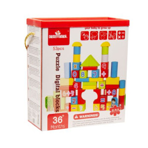 Конструктор-сортировщик 'Цифры' (53 детали). Деревянний, цветной конструктор.53 детали разной формы, из которых, если хорошо постаратся, можно соорудить большой замок. Упакован в специальную, плотную коробку с крышечкой-сортером.