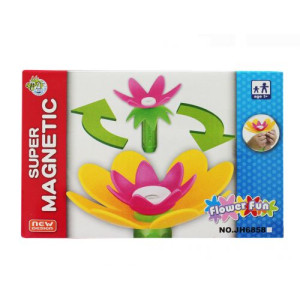 Конструктор магнитный 'Цветочек', 5 крупных, разноцветных деталей (стебель, лепестки) с магнитами посередине.
