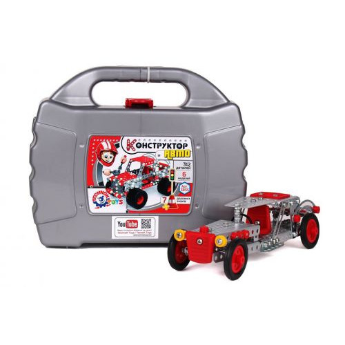Конструктор металличсекий 'Универсал Технок' в пластиковом чемодане. На 312 элемента, 6 моделей (автомобили разных видов) +7 дорожных знаков.