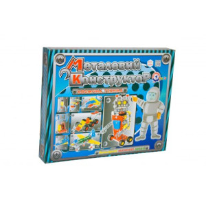 Конструктор металлический 'Космическая техника'. 225 детали в комплекте (винтики, планки, гайки, вилки, руль, колеса, ключи, отвертка и др.). 8 различных моделей для сборки, пошаговая инструкция.