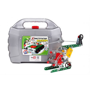 Конструктор металличсекий 'Милитари' в пластиковом чемодане. На 334 элемента, 8 моделей (военная техника разных видов).