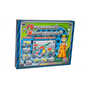 Конструктор металлический 'Воздушный трансопорт'. 191 деталь в комплекте (винтики, планки, гайки, вилки, руль, колеса, ключи, отвертка и др.). 8 различных моделей для сборки: самолет, - вертолет (модель №1), - истребитель, - аэроплан, - гидроплан, - вертолет (модель №2), - самолет (модель №2), и т.д. Пошаговая инструкция.