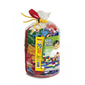 Конструктор 'ЮНИ-блок' (70 деталей). Состоит из набора крупных элементов для постройки дорог с дорожными знаками и машинкой, других креативных строений. Развивает фантазию и воображение, логику и мышление, усидчивость и внимательность, тактильные навыки и тренирует зрительную память.
