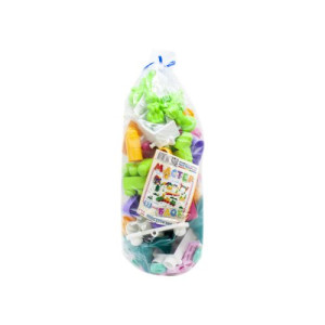 Пластиковый конструктор 'Мастер блок', 93 элемента. Позволяет собрать небольшое строение, мельницу, ёлочку, качели и паровозик с животными. Крупные детали.