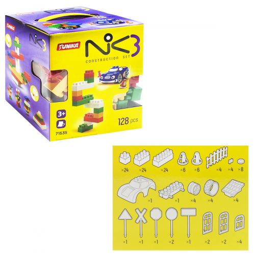 Яркий пластиковый конструктор, состоящий из 128 деталей. Конструктор развивает мелкую моторику рук, фантазию и воображение. В наборе есть все необходимые детали для веселой игры и интересного времяпрепровождения.