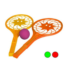 Набор для игры в теннис. В комплекте: 2 ракетки с интересной 'сеткой' в виде солнышка и поролоновый ..