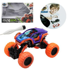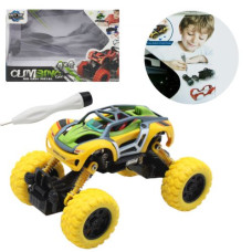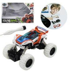 Машинка инерционная. Большие прорезиненные колеса. Трансформируется при столкновении (при нажатии на..