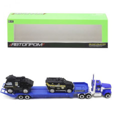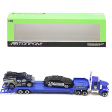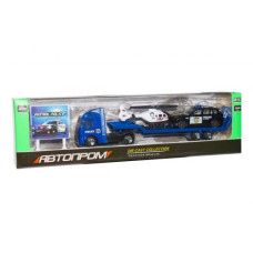 Трейлер синий 'АВТОПРОМ'. На трейлере полицейская машина и вертолет. Имеет подвижные элементы. Дорож..