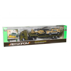 Трейлер зеленый 'АВТОПРОМ'. На трейлере военный самолет и военный внедорожник. Имеет подвижные элеме..
