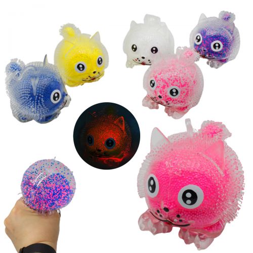 Симпатичная игрушка - антистресс в форме забавного котенка. Со светом. Внутри наполнена пенопластовыми шариками. Размер игрушки - 10х8 см. Выполнена из качественных и безопасных материалов. Разные виды.