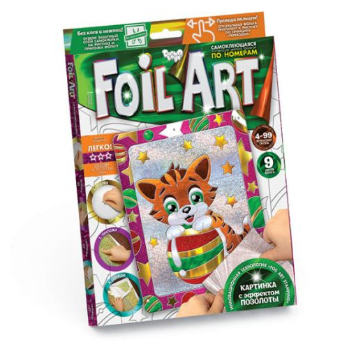 Самоклеющаяся аппликация цветной фольгой по номерам. В наборе: 9 цветов фольги.