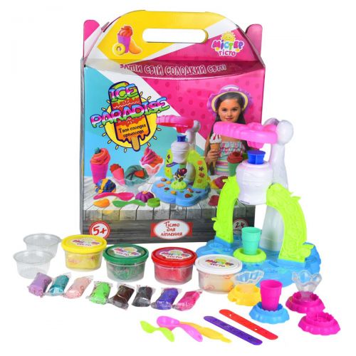 Большой набор для лепки 'Мистер Тесто: Ice Paradise' позволит ребенку проявить свою фантазию и приготовить красочное, яркое мороженое из теста. В наборе: мороженица, стаканчики, подставка, ложки, нож, насадки, тесто (8 стиков, 4 контейнера + 2 емкости для хранения).