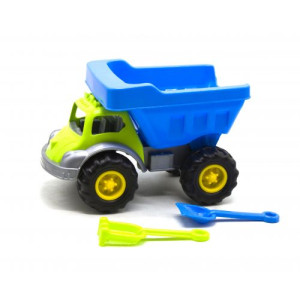 Детская машинка-грузовик с откидным кузовом. Отлично подойдет как для игры дома, так и на улице. Выполнена из прочного и качественного пластика. В наборе с машинкой есть грабельки и лопатка.