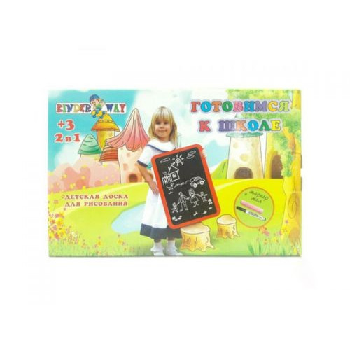 Доска 2-х сторонняя. Мольберт имеет две рабочие поверхности: темную грифельную и белую магнитную. Перва - для мелков, вторая - для магнитов и маркеров. Маркер (2 цвета) и набор мелков в комплекте.