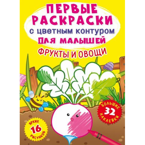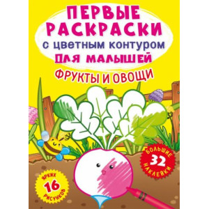 [F00023976] Книга Первые раскраски с цветным контуром для малышей. Фрукты и овощи. 32 большие наклейки