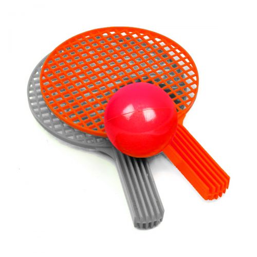 Набор для игры в теннис. В комплекте есть: 2 ракетки и мячик. Размер ракетки - 27х17 см., диаметр мячика - 7 см. Выполнен из качественного пластика.