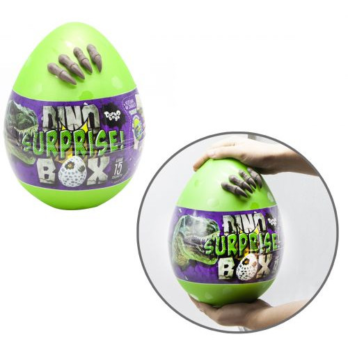 Игрушка-сюрприз 'Dino Surprise' будет отличным подарком для ребенка. В шкатулочке-яйце есть множество фантастических сюрпризов, которые сделают досуг малыша интересным и незабываемым. В наборе есть: окаменевший слой земной породы с двумя скелетами динозавров - 1 шт.; стек - 2 шт.; кисточка - 1 шт.; пластилин 'Air Clay Fluoric' - 2 шт; шариковый пластилин 'Bubble Clay Fluoric' - 2 шт.; игрушка-перчатка 'Triceratops' - 1 шт.; вязкая масса-лизун; в пластиковом стакане - 2 шт.; яйцо-сюрприз - 1 шт.; инструкция - 1 шт. Для детей от 3х лет.