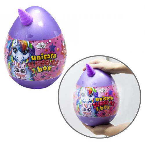 Игрушка-сюрприз 'Unicorn Surprise' будет отличным подарком для ребенка. В шкатулочке-яйце есть множество фантастических сюрпризов, которые сделают досуг малыша интересным и незабываемым. В наборе есть: пластилин 'Air Clay Fluoric' - 4 шт.; кинетический песок 'Stretch Sand' - 200 г., формочки для лепки - 2 шт.; мягкая игрушка единорог - 1 шт.; расческа - 1 шт.; шпилька - 1 шт.; вязкая масса «Unicorn slime» - 1 шт.; вязкая масса «Princess Pony Slime» - 1 шт.; карточная игра «Doobl Unicorn Image» - 1 шт.; инструкция - 1 шт. Для детей от 3-х лет.