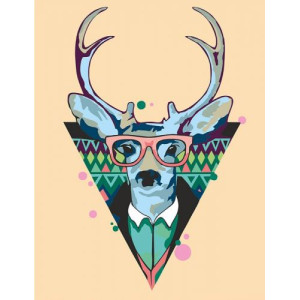 Картина по номерам 'Cool deer'. Для того, чтобы нарисовать картину, необходимо рисовать по пронумерованным контурам, которые соответствуют цвету краски. В наборе: полотно ручной работы на подрамнике с контуром и нумерацией, качественная синтетическая кисть, схема картины, набор акриловых красок и цветное изображение картины. Все необходимые краски уже в комплекте и не требуют смешивания. Размер: 35 х 45 см. Сложность: ★★☆.