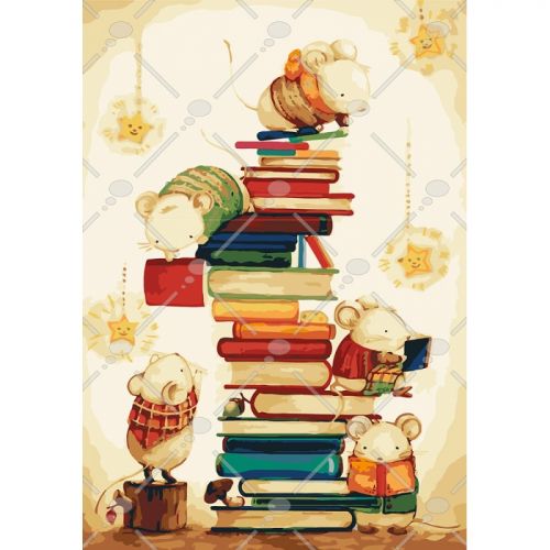 Картина по номерам 'Маленькие читатели'. Для того, чтобы нарисовать картину, необходимо рисовать по пронумерованным контурам, которые соответствуют цвету краски. В наборе: натуральный холст на подрамнике с галерейной натяжкой, бумажная копия с контурным рисунком картины (на картине нанесена схема контуров изображения с нумерацией), 3 нейлоновые художественные кисти, палитра акриловых красок в контейнерах, крепление. Все необходимые краски уже в комплекте и не требуют смешивания. Размер: 35 х 50 см. Количество цветов: 29. Сложность -★★★.
