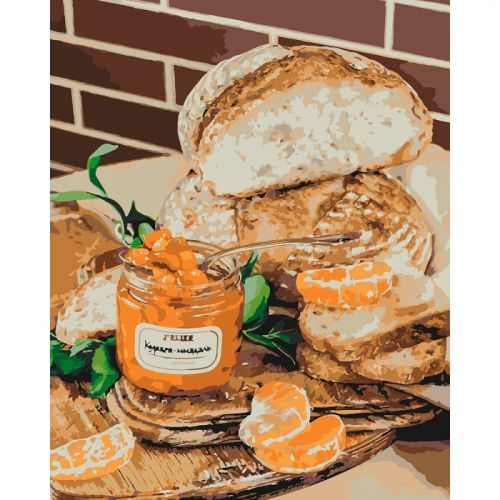 Картина по номерам 'Мандариновый привкус'. Для того, чтобы нарисовать картину, необходимо рисовать по пронумерованным контурам, которые соответствуют цвету краски. В наборе: натуральный холст на подрамнике с галерейной натяжкой, бумажная копия с контурным рисунком картины (на картине нанесена схема контуров изображения с нумерацией), 3 нейлоновые художественные кисти, палитра акриловых красок в контейнерах, крепление. Все необходимые краски уже в комплекте и не требуют смешивания. Размер: 40 х 50 см. Количество цветов: 26. Сложность - ★★★★.