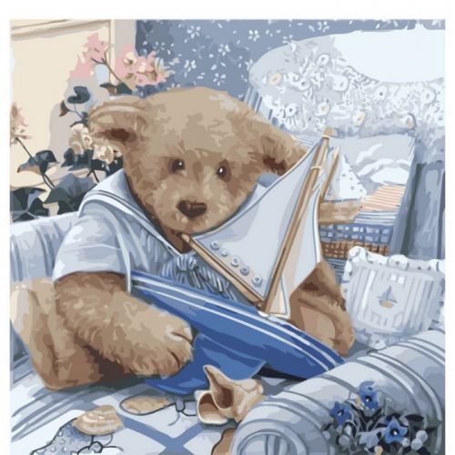Картина по номерам 'Плюшевый юнга'. Для того, чтобы нарисовать картину, необходимо рисовать по пронумерованным контурам, которые соответсвуют цвету краски. В наборе: натуральный холст на подрамнике с галерейной натяжкой, бумажная копия с контурным рисунком картины (на картине нанесена схема контуров изображения с нумерацией), 3 нейлоновых художественных кисти, палитра акриловых красок в контейнерах, крепление. Все необходимые краски уже в комплекте и не требуют смешивания. Размер: 40 х 40 см. Количество цветов: 25.